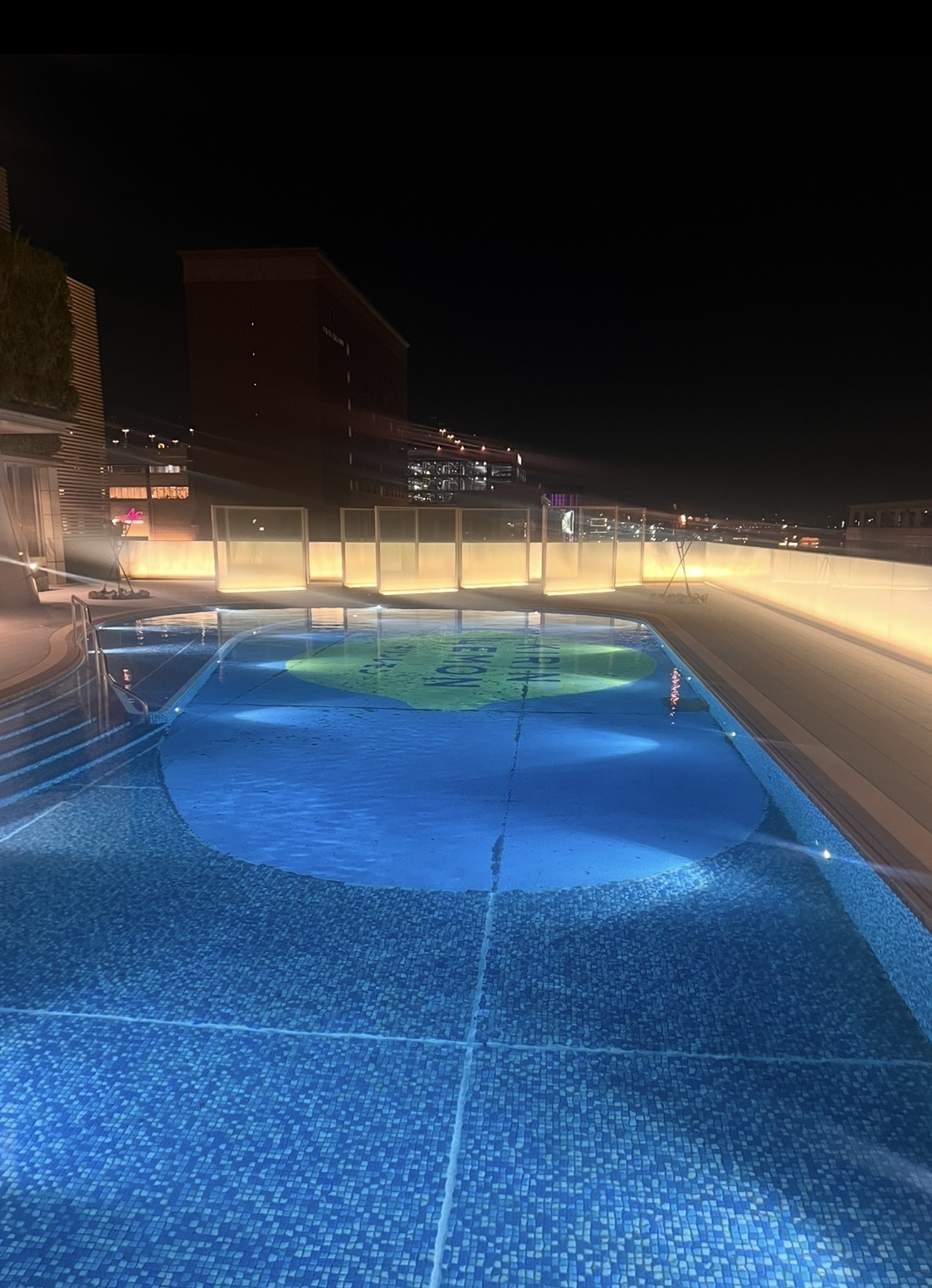 30分ごとに合計9回、APAホテルもピンク色にキラキラしていました